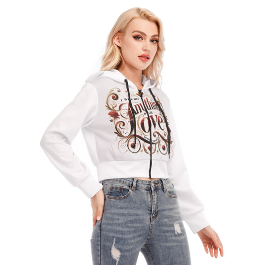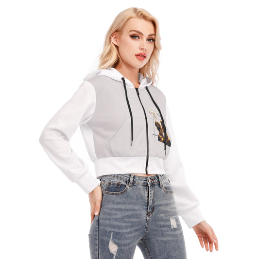 All-Over Print Women's Crop Top Hoodie With Zipper Closure